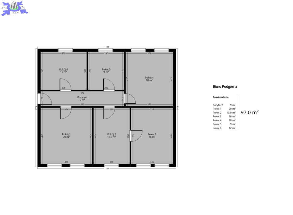 - składa się z korytarza oraz 6 pokoi, z których 5 posiada osobne wejście, natomiast jeden jest przechodni zgodnie z zamieszczonym rzutem pomieszczeń