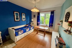 Na parterze znajdziesz także pierwszą łazienkę oraz pomieszczenia gospodarcze. Na piętrze rozplanowano cztery sypialnie oraz drugą łazienkę.