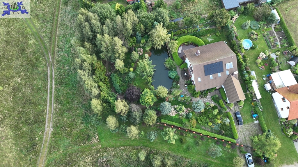 Ogród Działka o powierzchni 1946 m2 jest pięknie zagospodarowana - znajdziesz tu mnóstwo roślin ozdobnych, drzewa, krzewy oraz duży staw z pomostem, który nadaje posesji niepowtarzalnego klimatu. Idealne miejsce na relaks lub poranną kawę przy śpiewie ptaków.