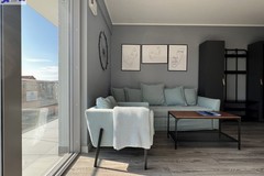 Apartament o powierzchni 40,22 m2 skierowany w strony wschodnią i południową z ogromnymi przeszkleniami co czyni go jasnym i słonecznym przez cały dzień.