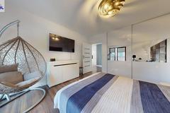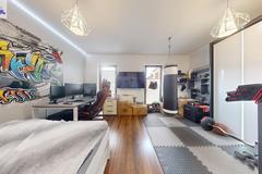 - duża sypialnia powstała w wyniku połączenia 2 pokoi,