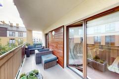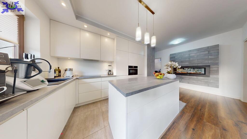- przestronny, niesamowicie doświetlony salon z aneksem kuchennym. Zabudowa kuchenna aż do sufitu, wysokiej jakości, robiona na wymiar wraz z wyspą. Z salonu wychodzi się na bardzo słoneczny taras z południową wystawą,