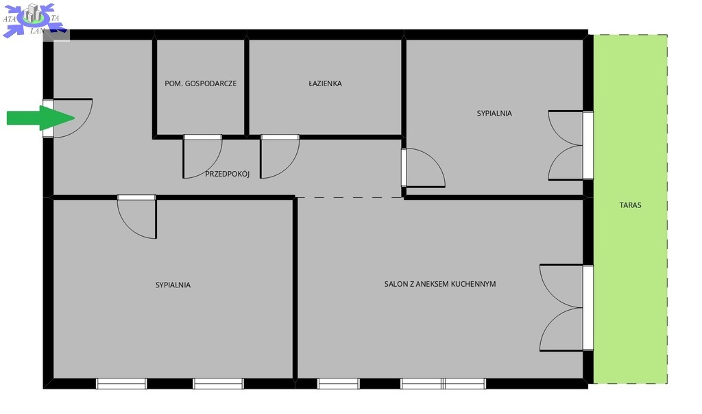 - sypialnia z szafą w zabudowie oraz wyjściem na wspomniany wyżej taras,