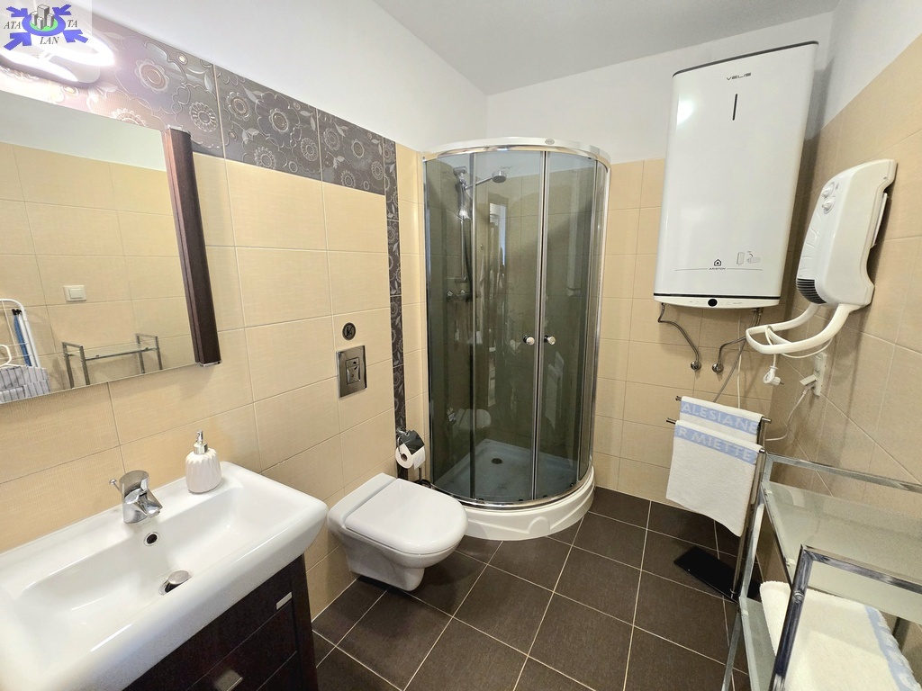 Oferujemy na sprzedaż apartament usytuowany na zamkniętym osiedlu w miejscowości Rewal. Na powierzchnię użytkową 34,7 m2 składają się salon z aneksem kuchennym i wyjściem na przestronny balkon, sypialnia, łazienka oraz przedpokój. Powierzchnia całkowita wynosi 42m2 stwarzając tym samym poczucie większej przestrzeni. Mieszkanie łączy w sobie nowoczesny standard wykończenia i komfortowy układ pomieszczeń. W cenie pozostaje pełne umeblowanie i wyposażenie, widoczne na załączonych zdjęciach. Całość została urządzona z myślą o potrzebach osób wynajmujących, aby zapewnić wszystko co niezbędne podczas spędzania wakacji nad morzem.