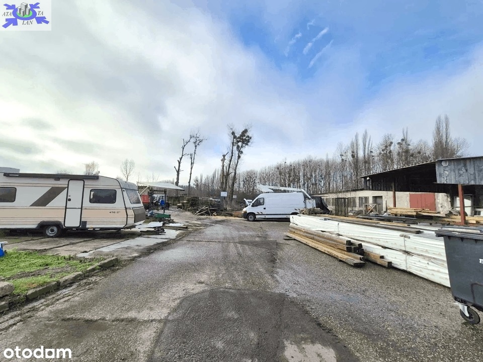 Powierzchnia terenu wynosi 2562 m2, nieruchomość ogrodzona z bramą i monitoringiem. Na terenie( placu)znajduje się duży namiot, dwa traki oraz mix drewna również drewno wysuszone( drewno na opał, deski dąb, sosna, krokwie) itp.