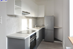 Kawalerki salon z aneksem kuchennym, łazienka, korytarz.