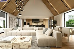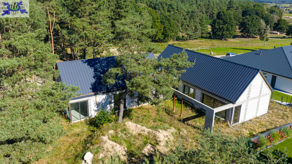 przemyślany, wygodny układ pomieszczeńpodział na strefę dzienną i nocnąduże przeszklenia wpuszczające mnóstwo naturalnego światłagaraż 2 stanowiskowy w bryle budynku (37m2)
