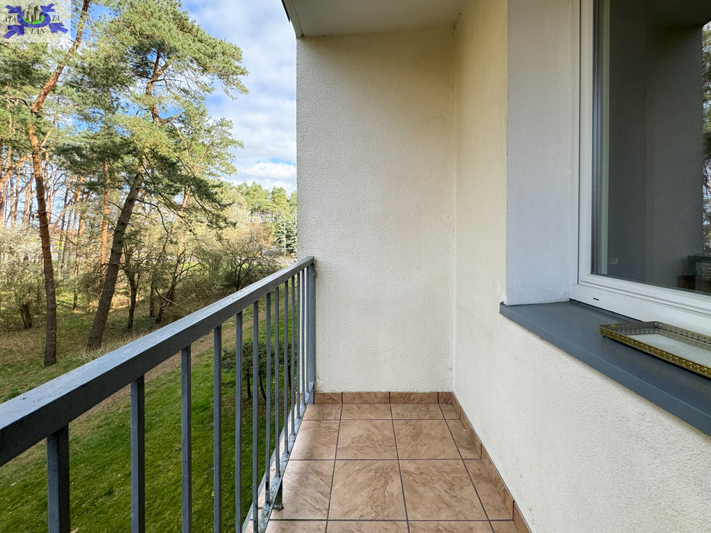 * balkon - z widokiem na urokliwy lasek sosnowy i teren zielony, cisza.
