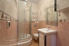 Łazienka na piętrze i toaleta na parterze w glazurze i terakocie.