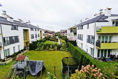 Dodatkowo duży balkon z markizą, z widokiem na ogrody i tereny zielone.
