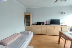 W pokojach ściany gładzone i pomalowane, na podłogach panele.