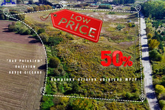 Cena za m2 brutto ok. 52,71 zł/m2 za całość - 70,44 zł za działki pod zabudowęPowierzchnia całkowita (wszytkich działek z drogami) 77 279 m2.