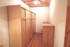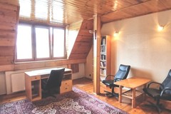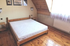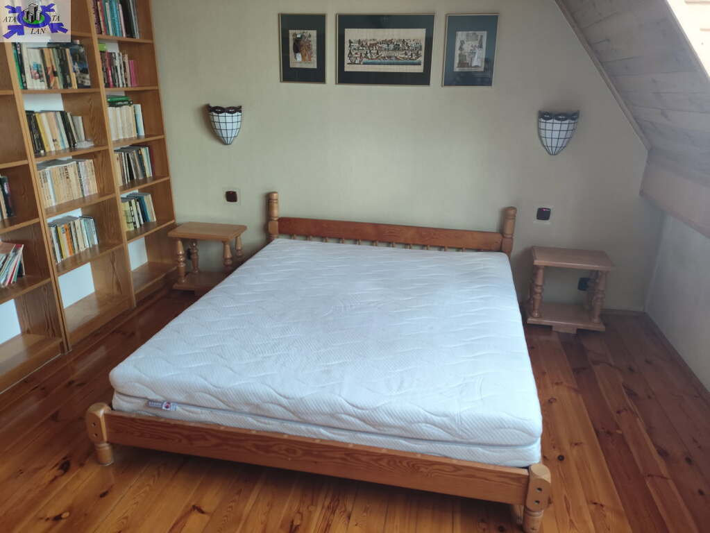 W pokojach i przedpokoju na podłogach gruba, wycyklinowana deska. Drzwi wewnętrzne drewniane. Sufity i skosy obłożone deską.