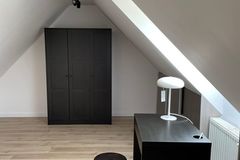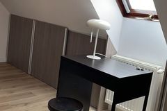 - duży pokój ze skosami o powierzchni 32m2 wyposażony w zabudowę skosów.