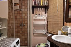 * łazienka z prysznicem, wc i umywalką z możliwością powiększenia