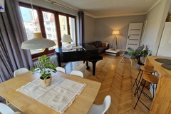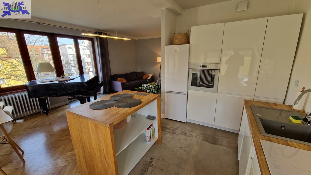 Lokal to mieszkanie 2 pokojowe o powierzchni 62,49 m2 znajdujące się na 4 kondygnacji (niskie piętra nie jest aż tak wysoko). Budynek z lat 60tych bez windy. Mieszkanie jest w pełni wyposażone i umeblowane. W lokalu niezbędne sprzęty AGD pralka, zmywarka, płyta indukcyjna, lodówko-zamrażarka, piekarnik czy mikrofalówka. W sypialni i na korytarzu spore zabudowane szafy.