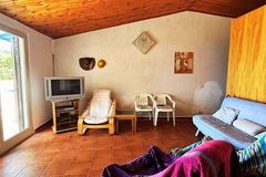 Na piętrze dwie sypialnie, łazienka i duży balkon z widokiem na morze.