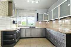 Na powierzchnię parteru budynku, pełniącego jednocześnie rolę strefy dziennej domu, składają się kuchnia z jadalnią, przestronny salon z którego wychodzi się na taras oraz zaaranżowany ogród, łazienka z wc, pomieszczenie sanitarno - gospodarcze z bezpośrednim wejściem do garażu (2. stanowiskowy, z bramą otwieraną na pilota), korytarz i wiatrołap. Na piętro nieruchomości prowadzą piękne, marmurowe schody (Breccia). W górnej części domu, pełniącej głownie strefę nocną, stanowią 3. sypialnie, pokój wielofunkcyjny, główna łazienka z wc oraz korytarz.