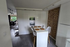 * półotwarta jasna kuchnia z oknem (meble wolsztyńskie na wymiar, w cenie - mikrofala, piekarnik, lodówko - zamrażarka oraz zmywarka 45 cm w zabudowie).