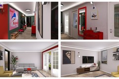 Przy obecnym układzie mamy klasyczny, duży przedpokój z którego wchodzi się do łazienki, kuchni, salonu i trzech sypialni, przy czym ta położona obok salonu jest przechodnia (piękne, duże, drewniane drzwi prowadzą do salonu). Jest wiele możliwości aranżacji pomieszczeń - w przykładowej wizualizacji wykorzystano koncepcję w której kuchnia zostaje przeniesiona właśnie do tej sypialni otwierając się na salon.