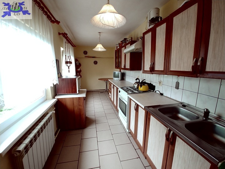 Pokoje o pow 38, 15 i 16m2, z większego możliwość wydzielenia czwartego pokoju. Z największego wyjście na balkon ok. 6m2. Na podłodze parkiet i panele, ściany malowane i częściowo wytapetowane. Kuchnia z oknem w zabudowie wraz ze sprzętem sgd. Na podłodze terakota. Łazienka z oknem i toaleta razem, wanna, umywalka.