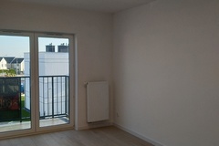 salonu z aneksem kuchennym i wyjściem na balkon,
