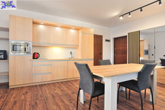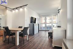 OPIS MIESZKANIA Do wynajęcia mieszkanie znajdujące się na trzecim piętrze V-piętrowego bloku z windą. Jego całkowita powierzchnia wynosi 43,80 m2, jest w pełni umeblowane i wyposażone. W mieszkaniu znajdują się dwa pokoje w tym jeden z aneksem kuchennym oraz łazienka z wc. Łazienka wyposażona jest w kabinę prysznicową, umywalkę, wc, pralkę i grzejnik drabinkowy. Część kuchenna jest umeblowana i wyposażona w sprzęty AGD. W sypialni jest łóżko z wygodnym materacem oraz szafa na ubrania. Zarówno z sypialni, jak i z salonu jest wyjście na balkon.