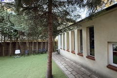 Drugi parterowy budynek usługowo-biurowy z lat 60-tych, obecnie przystosowany jako przedszkole, o powierzchni około 111 m2 i osobnym wejściu daje niezwykle szeroką możliwość adaptacji pod gabinety lekarskie, usługi kosmetyczne, biura lub na cele mieszkalne.