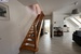Parter tworzy duży salon z wejściem do częściowo otwartej kuchni, sypialnia, łazienka oraz hol z którego drewniane schody prowadzą na drugi poziom.