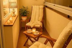 przestronnego salonu z dużym balkonem i pięknym, otwartym widokiem,