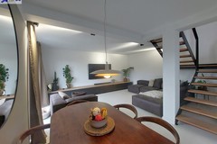 Piętra połączone są nowoczesnymi, robiącymi niesamowite wrażenie schodami.