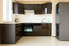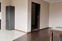 - przestronny i ustawny pokój dzienny o pow. ok. 20 m2 w którym ściany wygładzono i pomalowano a podłogę wyłożono panelami. W pokoju znajdują się praktyczne meble . Z pokojem dziennym łączy się aneks kuchenny ( ok.9 m2) z pełnym umeblowaniem wykonanym na wymiar oraz pełnym wyposażeniem w postaci nowoczesnej kuchenki z płytą indukcyjną, piekarnikiem elektrycznym, lodówki, zmywarki i wielu innych przydatnych elementów wyposażenia. Podłogę aneksu wyłożono gresem.
