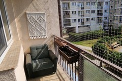 Okna mieszkania wychodzą na dwie strony świata. Salon z balkonem typu logia od południa z widokiem na ładnie zagospodarowane podwórze z licznymi nasadzeniami, alejkami i ławeczkami.