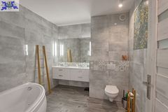 - Dwie łazienki Jedna na każdym poziomie, funkcjonalnie zaprojektowane, w wysokim standardzie wykończenia.