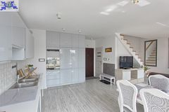 Mieszkanie składa się z dwóch poziomów, zapewniając przestrzeń i komfort dla całej rodziny