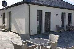 W każdym z apartamentów znajduje się w salonie kanapa, stolik kawowy, stół z czterema krzesłami, telewizor smart TV, w sypialni łóżko dwuosobowe, aneks kuchenny wyposażony w zabudowę szafek kuchennych, płytę grzewczą 2 - palnikową, lodówkę 60, oraz szafa dwudrzwiowa z lustrami. Ogrzewanie elektryczne podłogowe, jak również woda z pieca elektrycznego firmy Ariston sterowany zdalnie przez wi-fi. Meble ogrodowe oraz 4 miejsca parkingowe na działce.