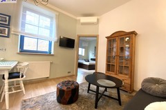 *spacious living room with kitchenette, windows overlooking the Pomeranian Dukes' Castle