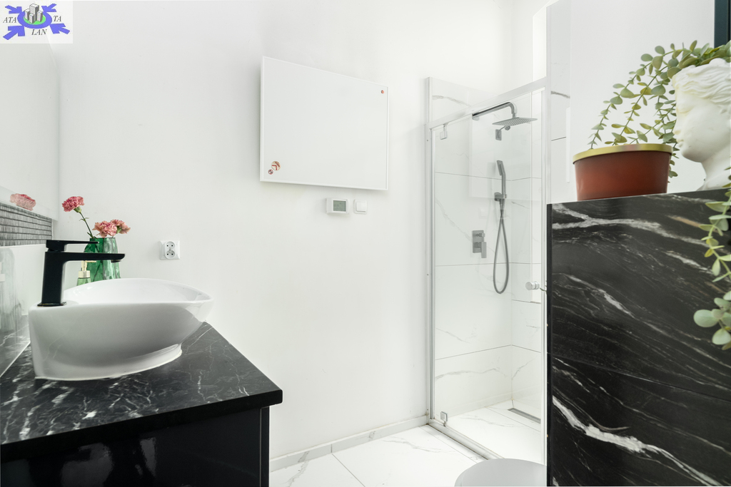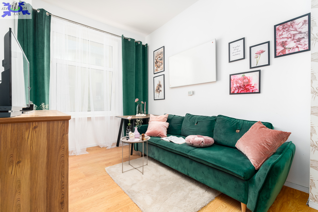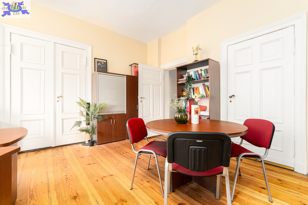 Strefa biurowa Dwa przestronne biura, idealne do prowadzenia działalności gospodarczej, dobrze doświetlone naturalnym światłem.Strefa mieszkalna Stylowa kawalerka z osobnym wejściem, przytulnym salonem z zielonymi kanapami i eleganckimi akcentami dekoracyjnymi.Kuchnia Nowoczesna, z pełnym wyposażeniem (lodówka, płyta indukcyjna, zmywarka) oraz eleganckim wykończeniem.Łazienka Wysokiej jakości wykończenie, komfortowa przestrzeń z nowoczesnymi urządzeniami.