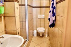 łazienka z wc ( w płytkach ceramicznych, z wyposażeniem sanitarnym) oraz pom. gospodarcze,