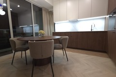 Dwupokojowy apartament z przestronnym tarasem został zaprojektowany z dbałością o detal. Jasna strefa dzienna z funkcjonalnym aneksem kuchennym tworzy idealną przestrzeń do relaksu i codziennego życia. W salonie znajduje się elegancka kanapa, stolik kawowy oraz stół z krzesłami - wszystko utrzymane w nowoczesnym, spójnym stylu.