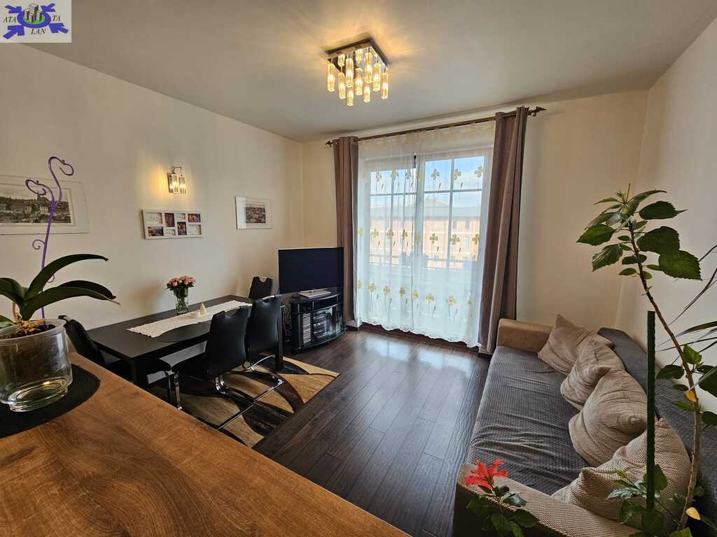 Mieszkanie rozkładowe o powierzchni 42,6m2 składa się z pokoju z aneksem kuchennym 21m2, sypialni 13,5m2, łazienki z wc 4,6m2 i przedpokoju 3,7m2. Z salonu wyjście na słoneczny balkon o powierzchni 5m2, z widokiem na plac zabaw.