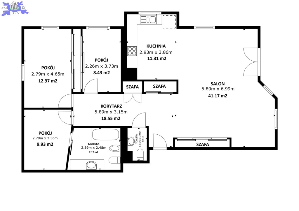 - dwa pokoje z szafami w zabudowie