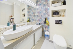 * Duża łazienka wyposażona w wannę, WC oraz dużą umywalkę