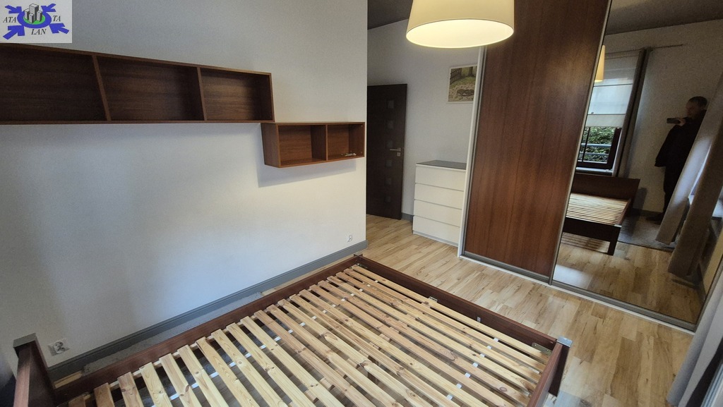 W mieszkaniu mamy dwie bardzo duże i pojemne zabudowane szafy do sufitu (jedna w sypialni a druga na korytarzu). W salonie nowa zabudowa Besta prawie po sufit zapewniająca bardzo dużo miejsca jak i miejsce pod telewizor. Nowoczesna kuchnia z dużą ilością szafek oraz sprzętem AGD (zmywarka, lodówka, płyta indukcyjna). W salonie zamontowana klimatyzacja Daikin (pompa ciepła - można również nią grzać). W całym mieszkaniu rolety zewnętrzne elektrycznie sterowane z pilota. W pomieszczeniu gospodarczym praktycznie nowa pralko-suszarka Electrolux i dodatkowe półki i regał.