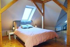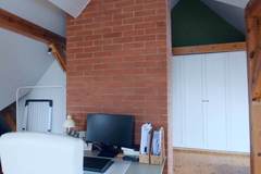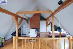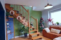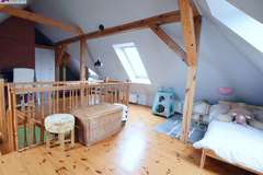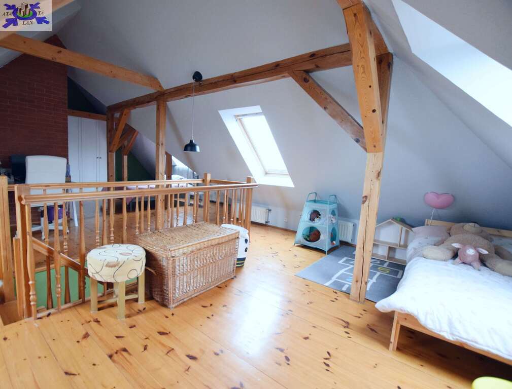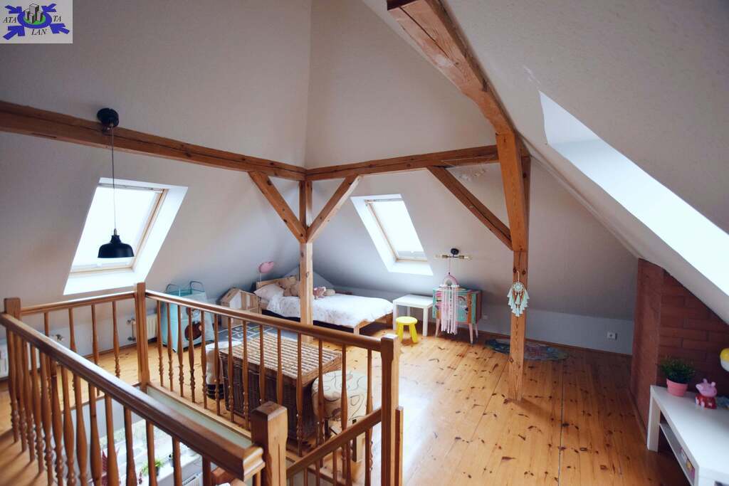 duża, wysoka przestrzeń open space - obecnie jako strefa dzieci, z możliwością wydzielenia dwóch dodatkowych pokoi, co daje łącznie nawet 4 pokoje. Ta część mieszkania nadaje wnętrzu charakter domu jednorodzinnego.