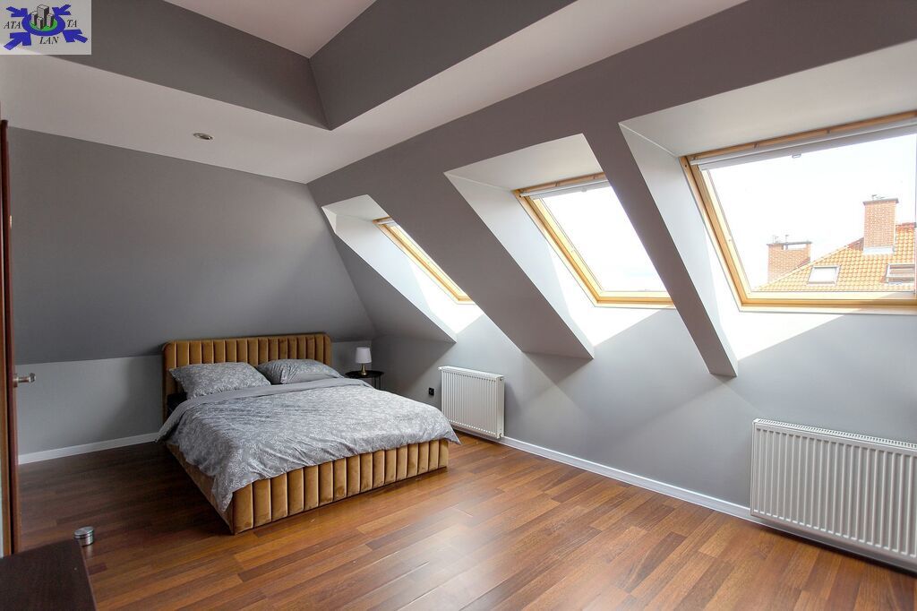 sypialnia z możliwością aranżacji biura lub garderoby, nieuciążliwe skosy spora powierzchnia do zagospodarowania na garderoby i szafy pod zabudowę