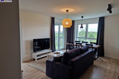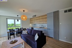 Lokum składa się z trzech słonecznych pokoi, które dzięki południowej ekspozycji okien są doskonale doświetlone przez cały dzień. Kuchnia jest wyposażona w nowoczesny sprzęt AGD, a w salonie znajduje się telewizor. Wszystkie pomieszczenia są wykończone w wysokim, atrakcyjnym standardzie.