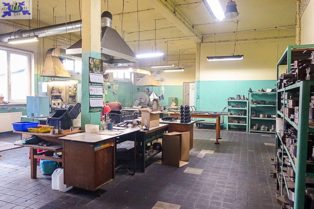 * Budynek o powierzchni użytkowej 1440 m2, dwukondygnacyjny, murowany z cegły ceramicznej, przedwojenny, ze ścianami działowymi, strop ceramiczny Kleina, schody żelbetowe, wylewane. Szeroka, wygodna klatka schodowa. Stropodach o konstrukcji krokwiowej wzmocnionej podciągiem stalowym, pokrycie dachu papa. W budynku znajduje się mała suwnica o nośności od 500 kg do 1000 kg, okna stalowe, w pomieszczeniach biurowych PCV, wysokość 4,5 m. W pomieszczeniach produkcyjnych siatka słupów. Nowoczesna kotłownia gazowa z nowymi piecami. Siła. Stolarka drzwiowa zewnętrzna wzmocniona, wrota stalowe. Na parterze i na piętrze hale produkcyjne, pomieszczenia biurowe, higieniczno - sanitarne, magazynowe, kotłownia, zaplecze socjalne. Dodatkowo część jednokondygnacyjna magazynowa z pomieszczeniem higieniczno - sanitarnym i kotłownia gazowa.