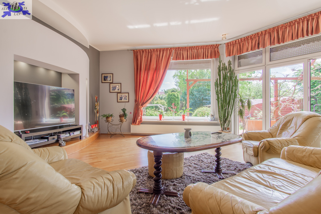 Wewnątrz domu został zaaranżowany samodzielny "mini apartament" z pokojem, sypialnią, oddzielną łazienką i wyjściem na taras, który z powodzeniem może pełnić funkcję mieszkania dla gości lub wielopokoleniowej rodziny, gwarantując intymność i świetne warunki do wypoczynku.
