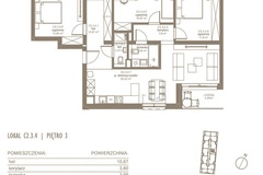 - Układ pomieszczeń salon z aneksem kuchennym z wyjściem na loggie, 3 sypialnie, łazienka, hol, korytarz